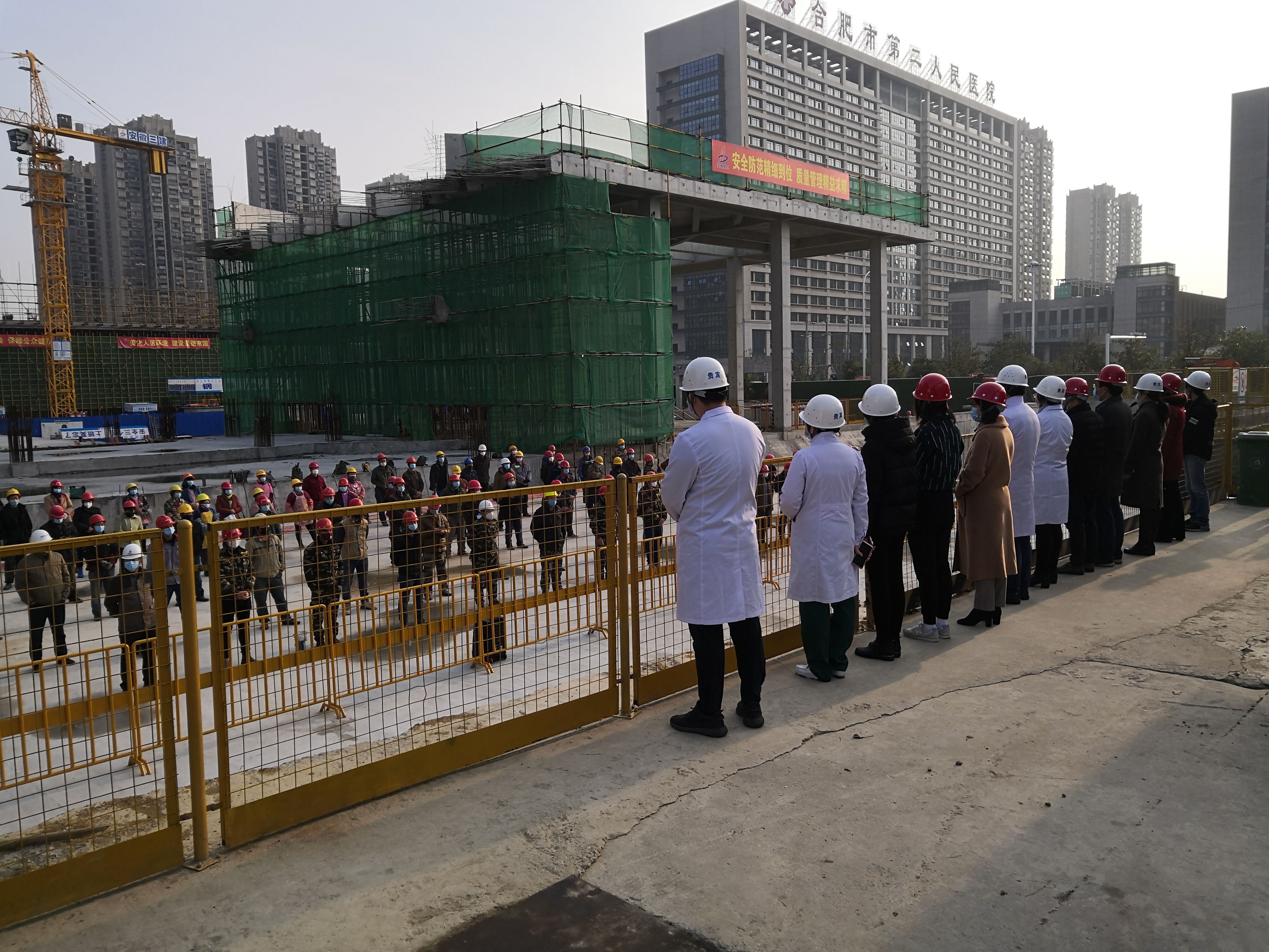 八公司積極配合合肥市疫情防治工作,春節(jié)期間加班將原合肥市二院項目辦公區(qū)移交給市二院作為隔離病房使用。為盡快復工,2月24日,項目部與市二院負責人溝通協(xié)商重建臨時辦公區(qū)。2月28日,項目負責人高瑞凱帶領項目部全體管理人員突擊辦公區(qū)建設,3月2日,辦公區(qū)完成建設,將施工現(xiàn)場與市二院高危區(qū)域徹底隔絕,順利實現(xiàn)復工。為做好項目防疫宣傳教育工作,3月3日項目部聯(lián)合市二院疫情防治辦技術專家為農(nóng)民工開展“疫情防治教程”培訓,為農(nóng)民工兄弟講解“消毒”、“洗手”、“口罩佩戴”、“交通出行”等正確做法,普及防控知識,確保廣大職工健康安全。